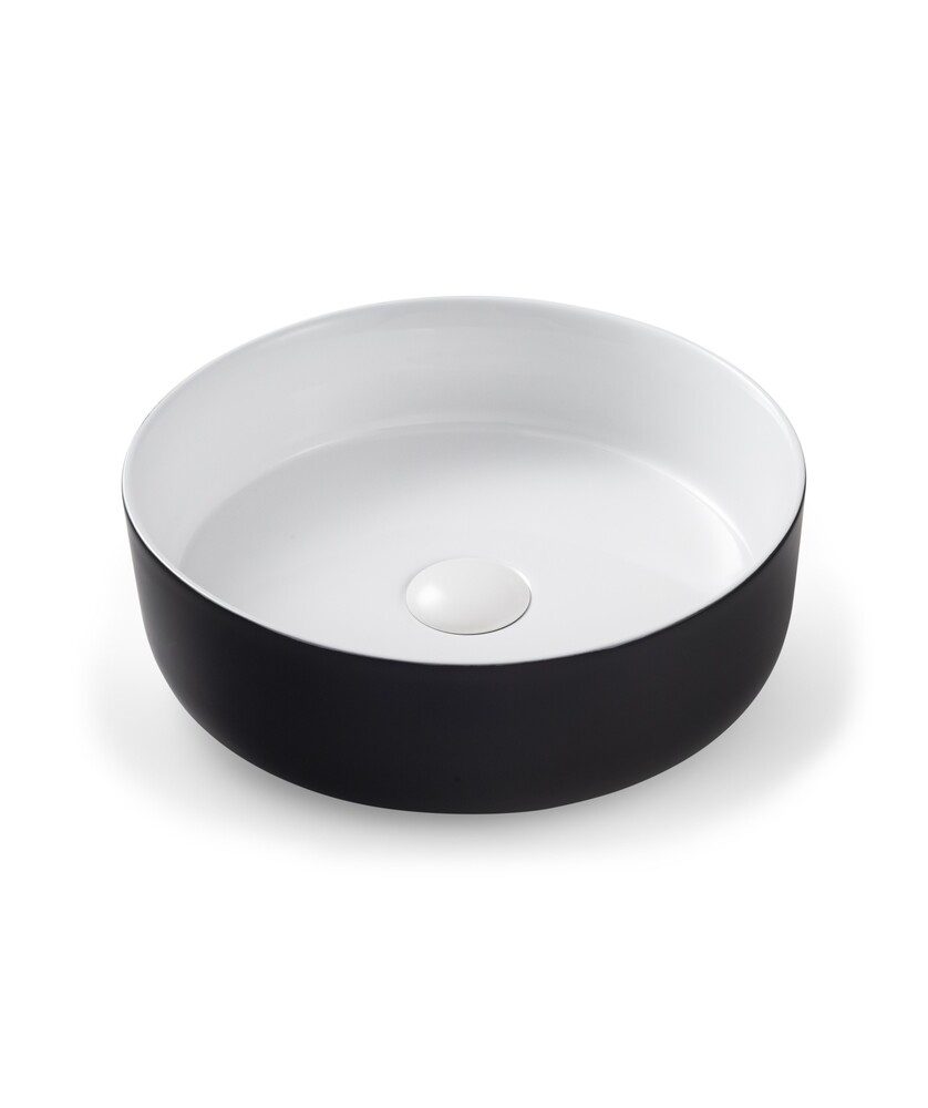/ Arko Ceramic Basin Above Counter 355mm 0TH NOF Black & White Silk Matte