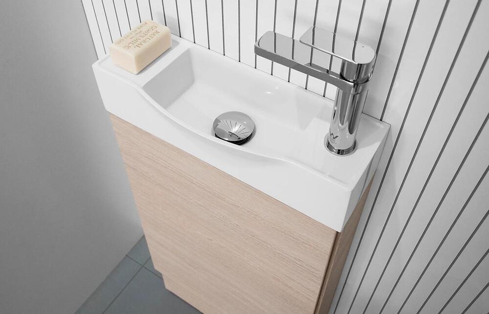 Shown in Seasoned Oak Chalk textured cabinet finish. Includes top. Tap sold seperately.