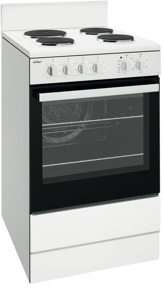 Electric Cooker 54cm Fan Forced Oven Grill in Oven 4 Hotplates White
