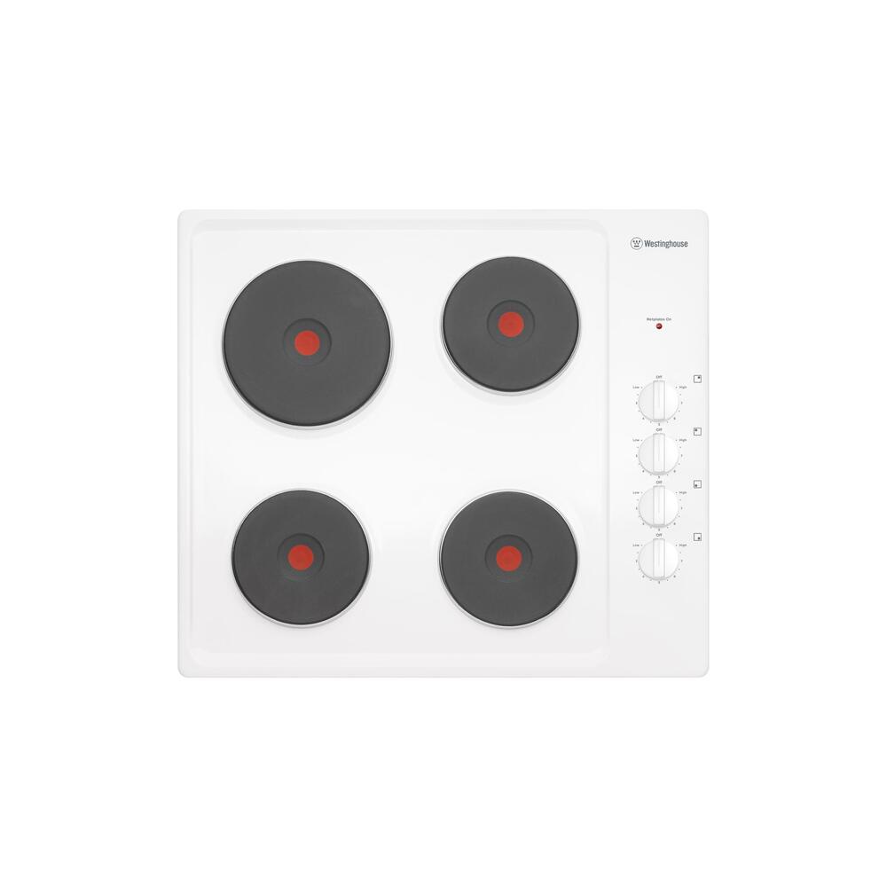 Electric Cooktop 60cm 4 Zone Knob Controls Solid Hotplates White