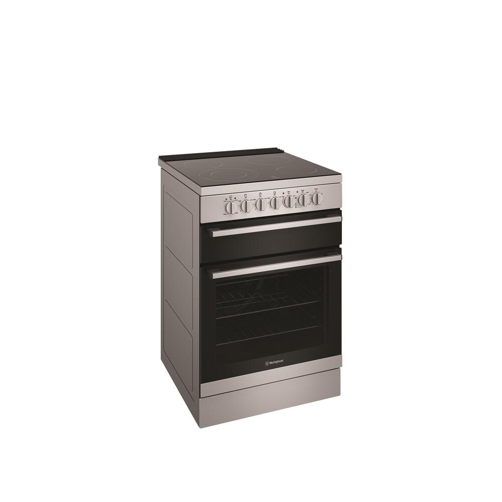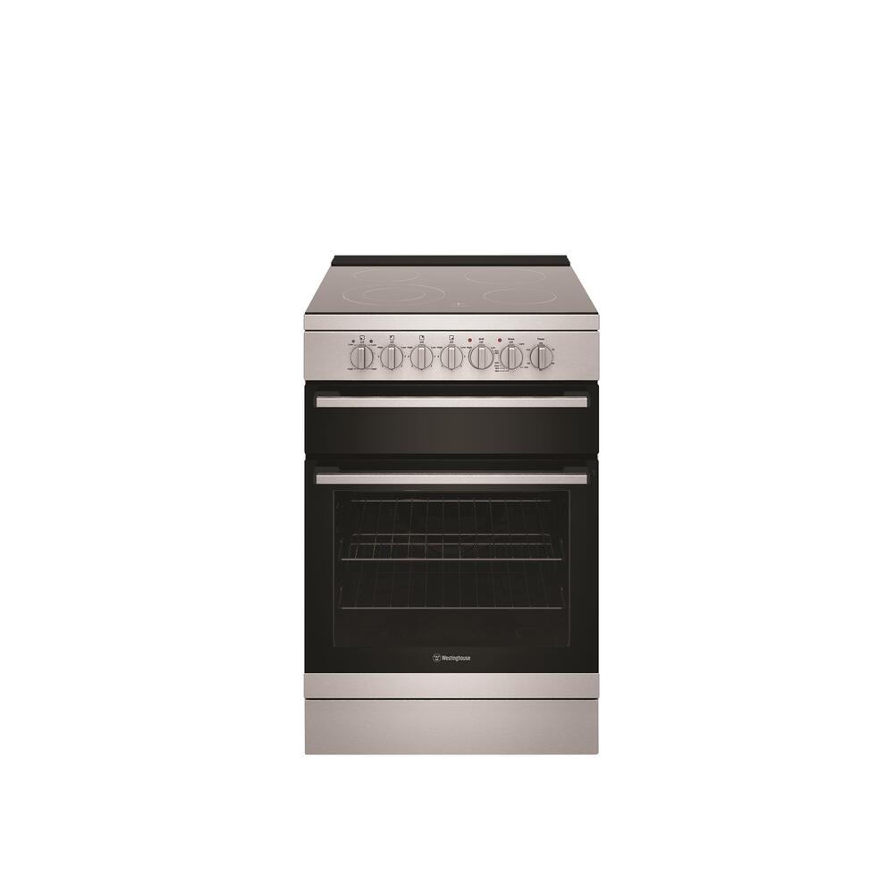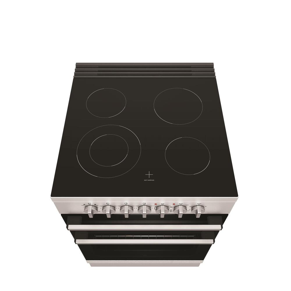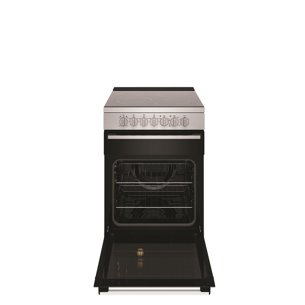 54cm stainless steel electric freestanding cooker with separate electric grill, fan forced electric oven, 120 minute timer with ringer, 4 zone ceramic cooktop with dual zone.