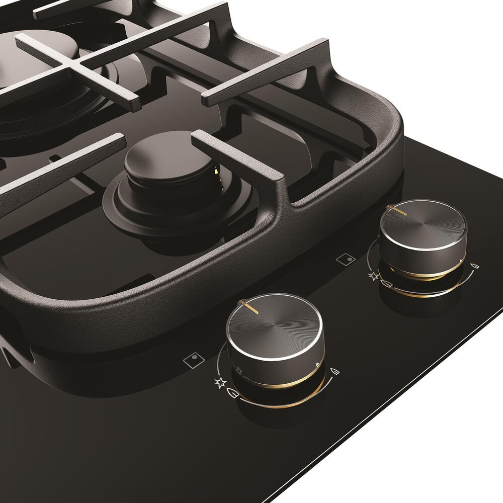 60cm 3 burner black ceramic glass