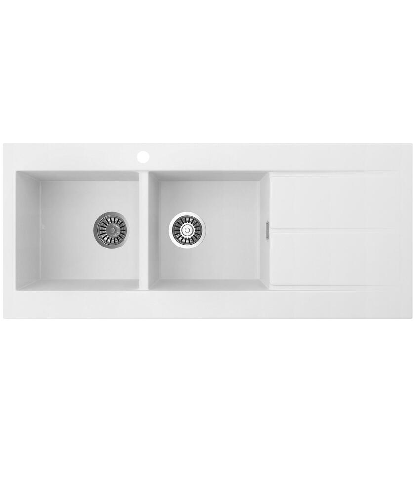 / Oros 1162 Arqstone Sink Double Bowl 1160x500mm 1TH OF RH Drainer White