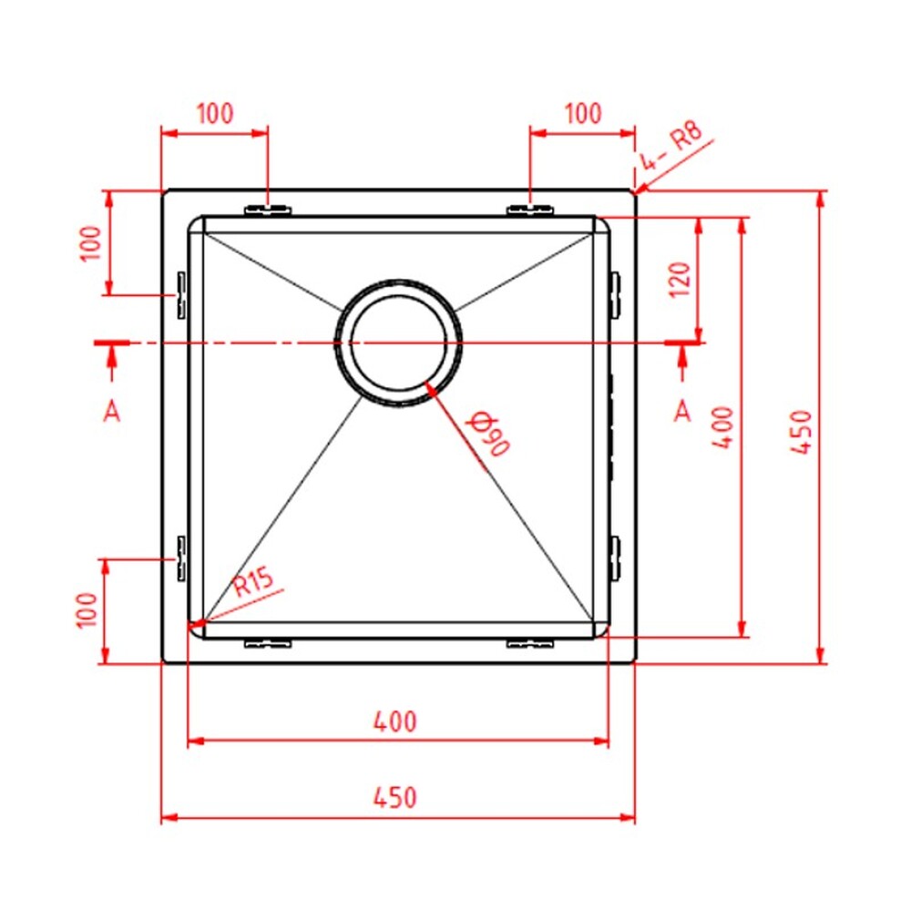 / Lorne Single Bowl Sink 450x450x200mm BSS With Waste Cover