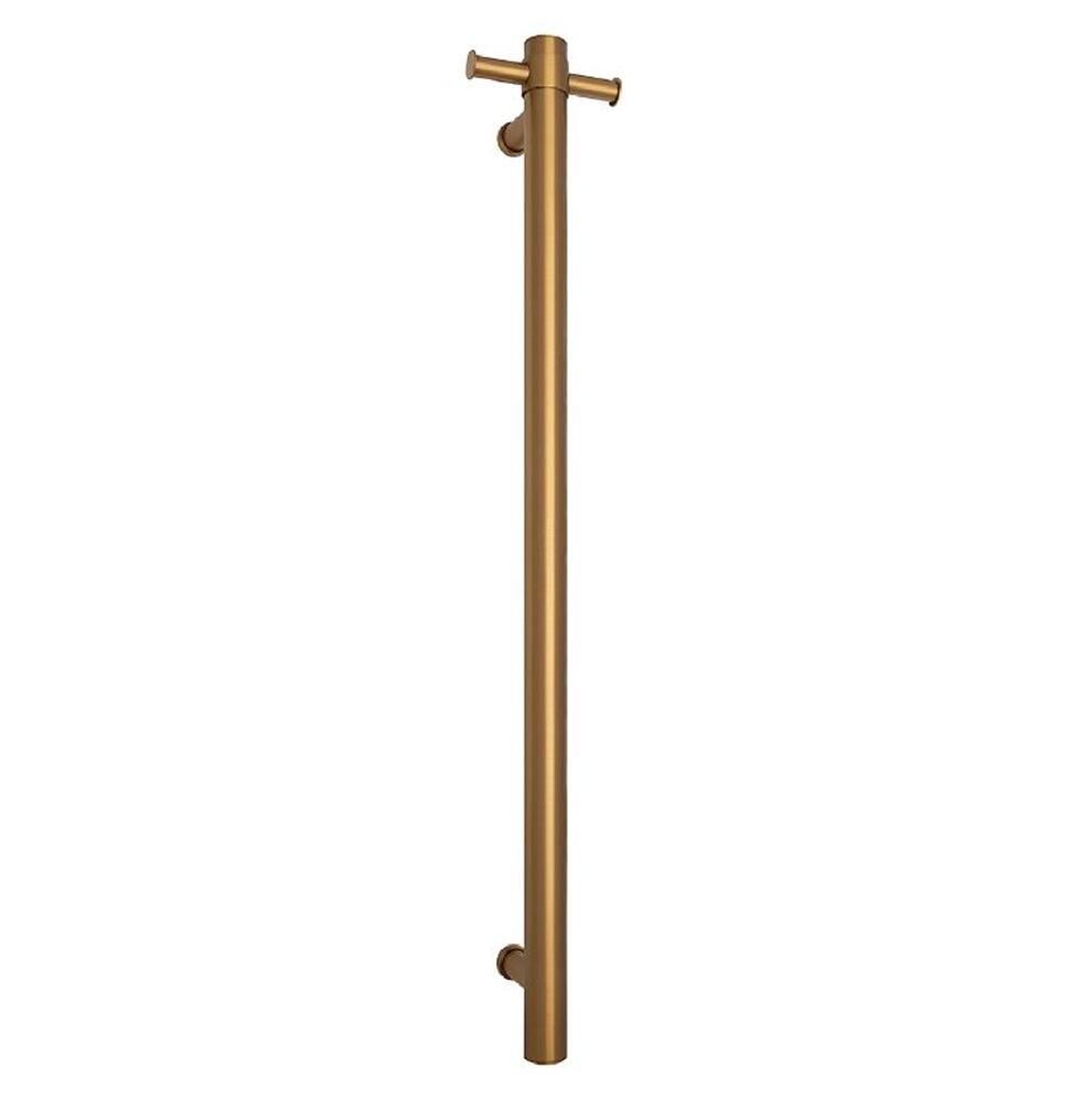 Vertical Bar Heated Towel Rail 240V Round 42x900x100mm Brushed Brass