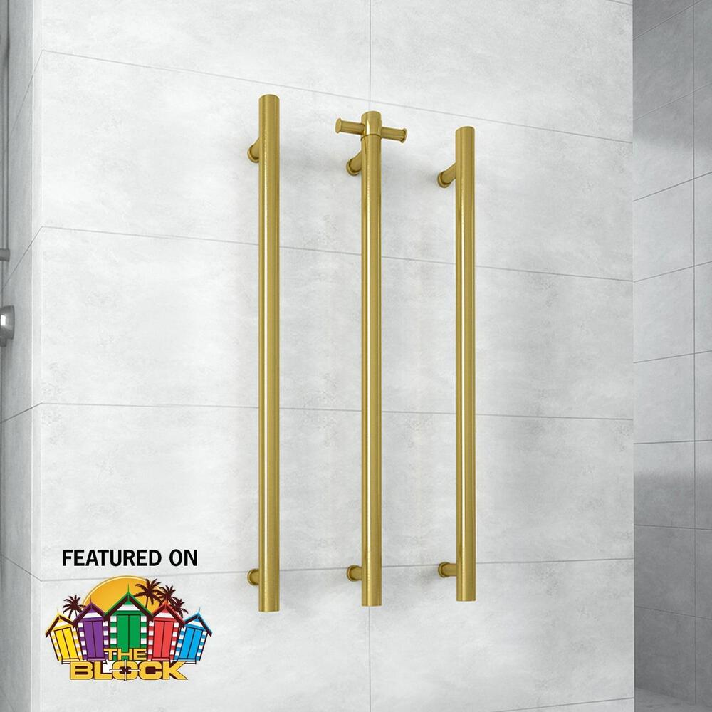 / Vertical Bar Heated Towel Rail 12V Round 42x900x100mm Brushed Gold