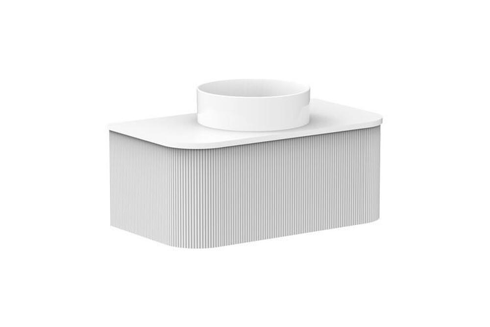 Bespoke curved thermolaminated v-groove cabinetry available in 4 cabinet finishes.